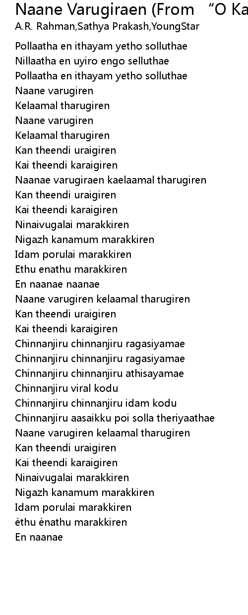 Naane Varugiren Lyrics / Naane varugiren ok kanmani kaatru veliyidai version подробнее.