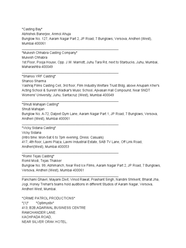 Rashmi Sharma Telefilms Casting Director Email Id : Supervisor producation at rashmi sharma telefilms private limited.